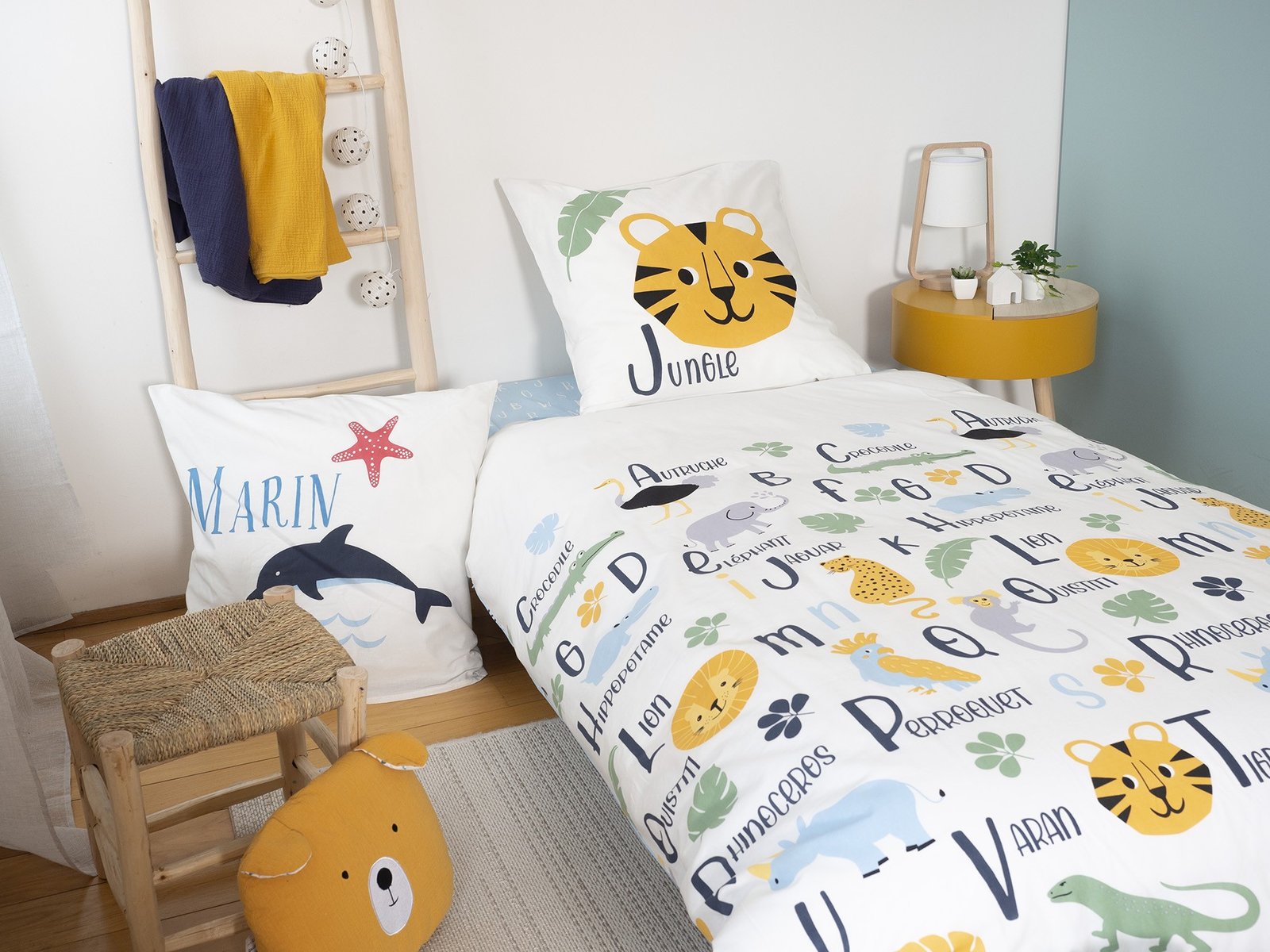 Parure Housse de Couette 140×200 cm et sa taie d’oreiller 63×63 cm Coté Déco Modèle Coton 100% Bio thème Magic...