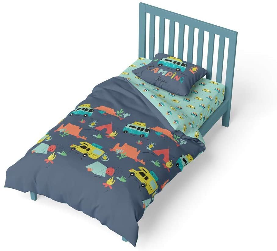 Parure Housse de Couette 140×200 cm et sa taie d’oreiller 63×63 cm Coté Déco Modèle Coton 100% Bio thème Bivouak...