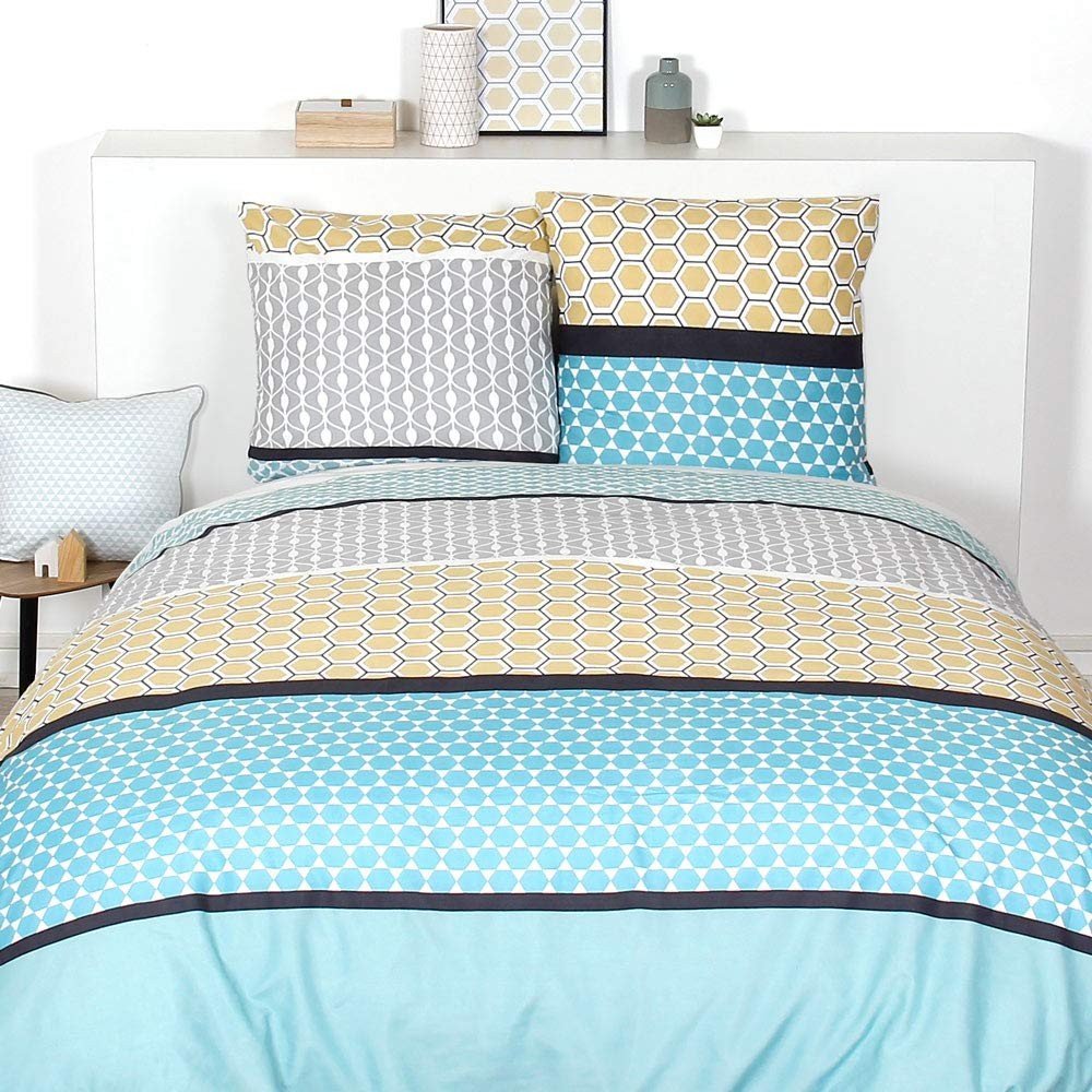 Parure Housse de Couette 240×220 cm et ses 2 taies d’oreiller 63×63 cm Coté Déco Modèle Naya 100% polyester Microfibre...