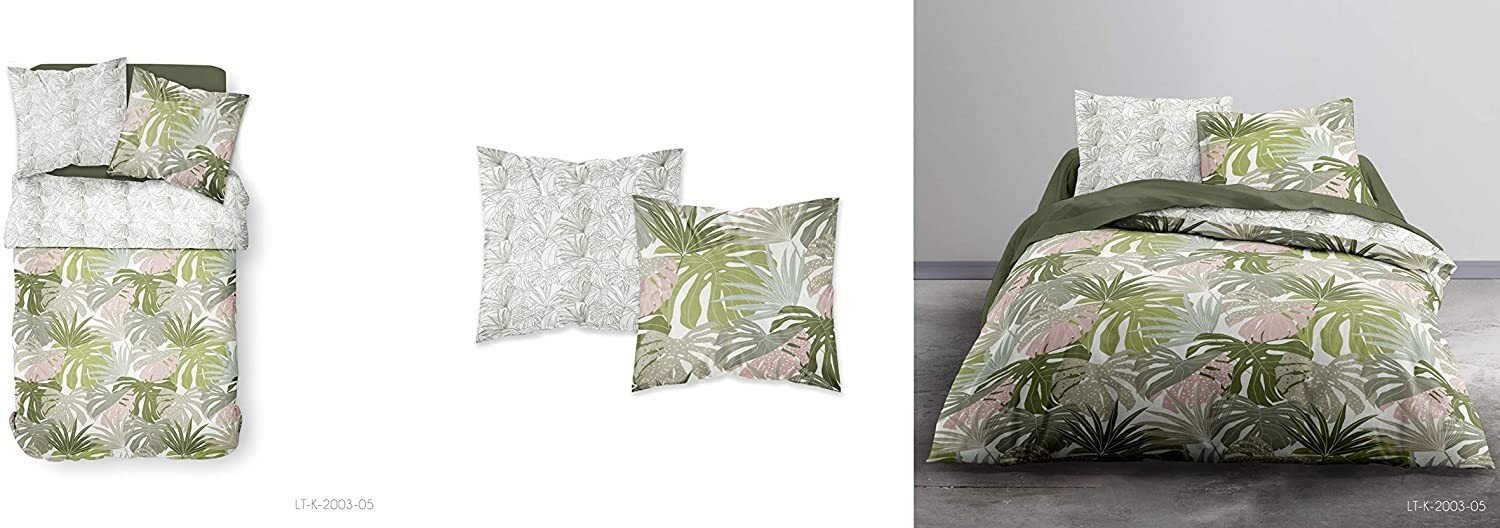 Parure Housse de Couette 240×220 cm et ses 2 taies d’oreiller 63×63 cm Coté Déco Modèle Coralio 100% polyester Microfibre...